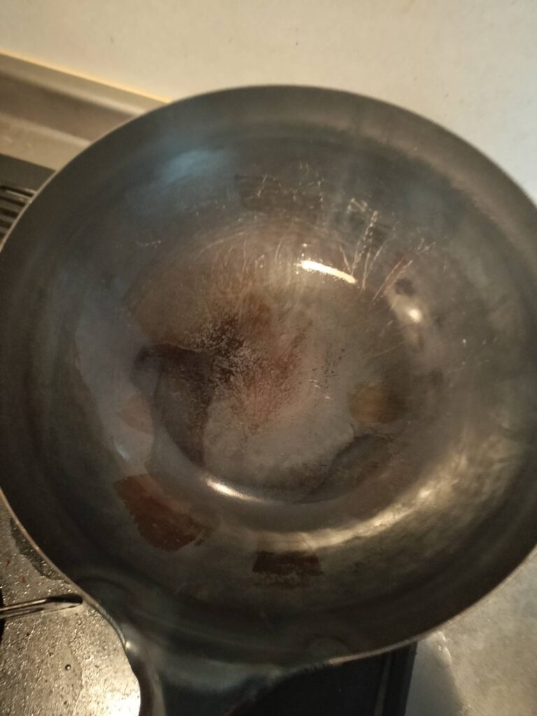 最後おまけですが、2日目の鍋の中の状態です。茶色い模様がついていますが、ChatGPT曰く油膜なのでもんだいないとのこと。