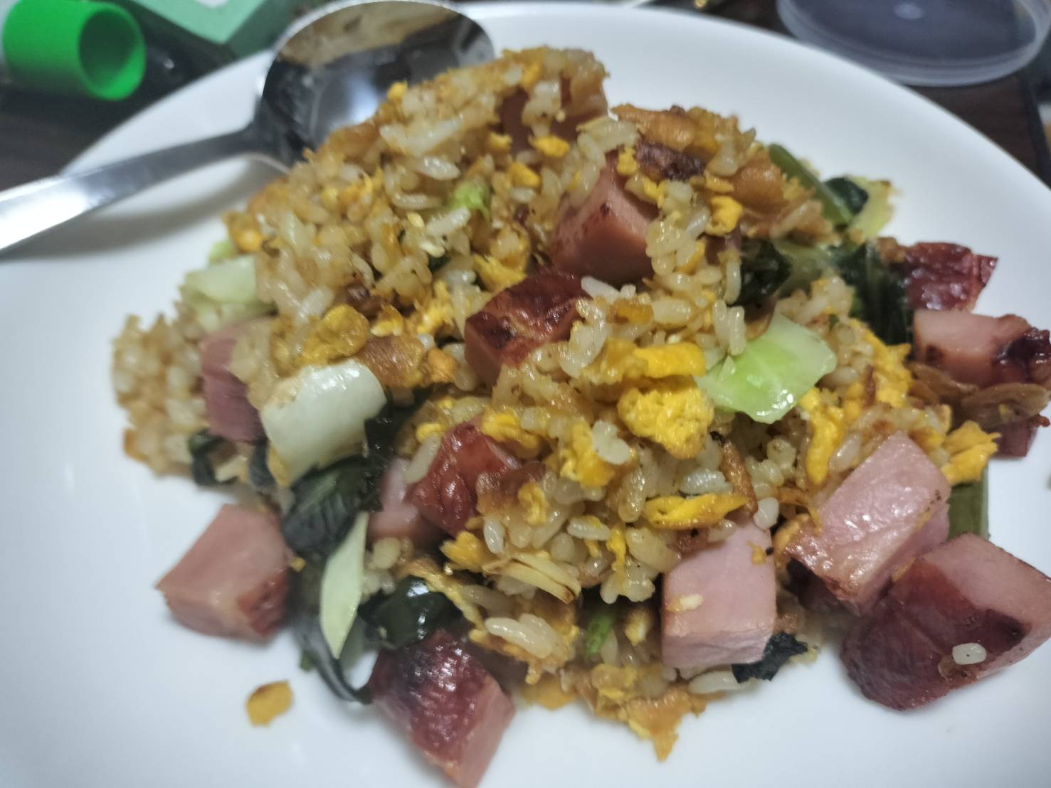 初日の今日は帰宅が21時で、料理を作り始めたのは23時でした。今日はチャーハンを作りました。材料はいたってインプルです。