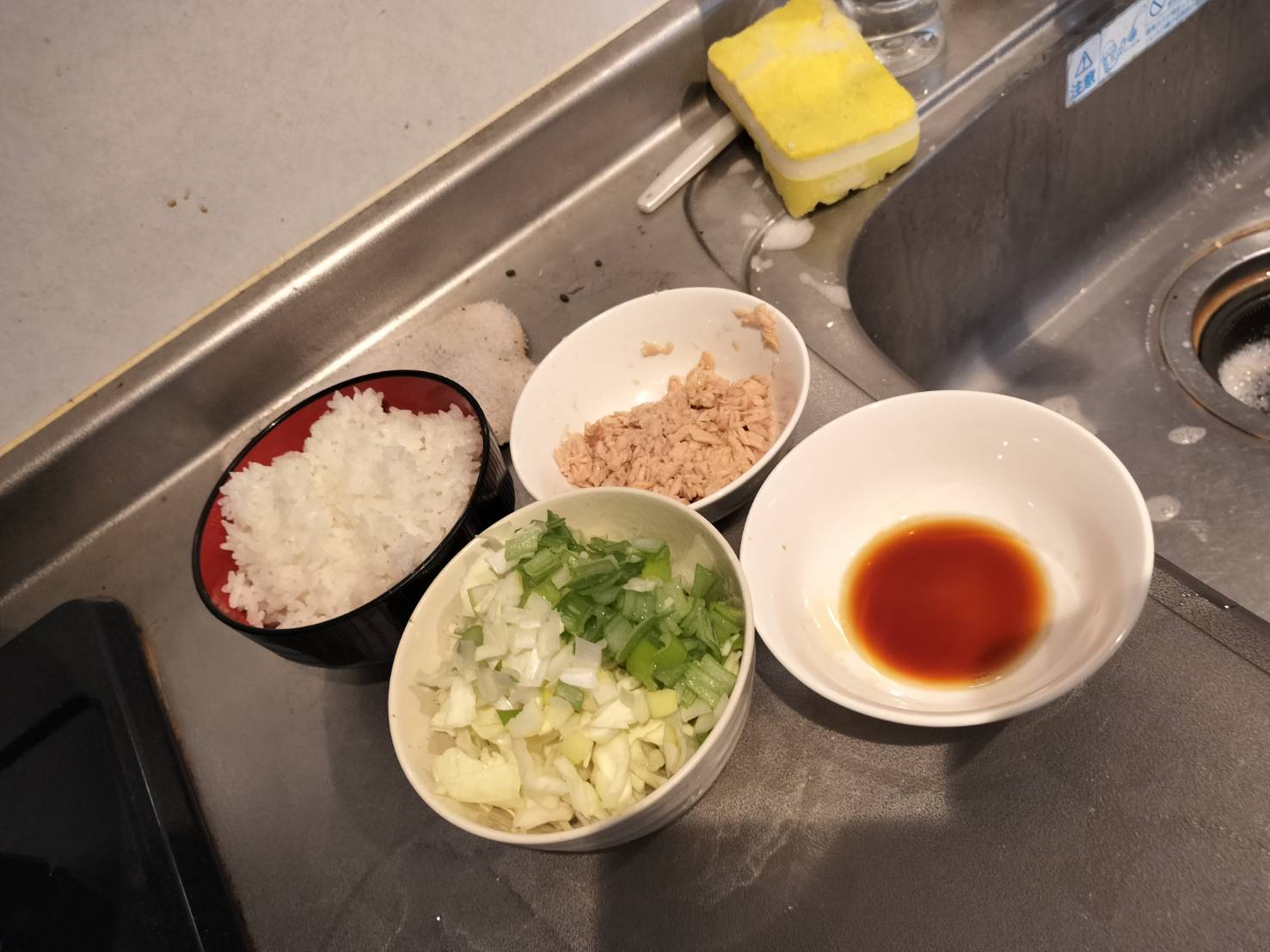 最近うすうす気づいていましたが、具材はできるだけご飯に合うように小さくした方がよさそうです。なのでそれを意識し、キャベツとネギは小さく切りました。